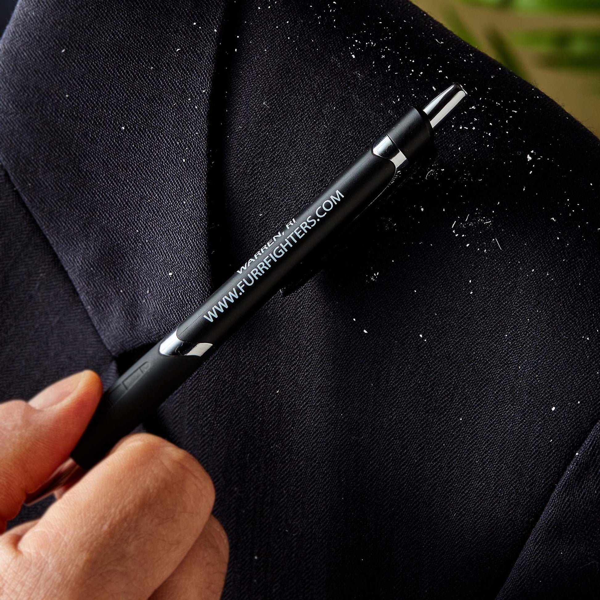 World's smallest and most discreet hair/lint remover ever!!! A pen turned lint roller:) For the professional person who wears a suit or uniform everyday and has that occasional, obligatory pet hair, lint or dandruff on your outfit when and where you DON'T want it!! Quick, easy removal of hair, lint, dandruff, etc where and when you DO need it::)) Pens have black ink. Available in red, black or blue color pen.